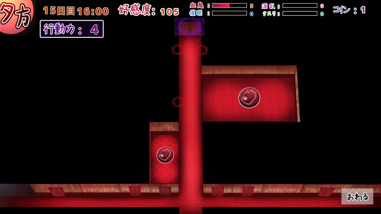 血鬼ゲージと好感度を順当に上げていけば、エンディングまで非常にサクサクです。
