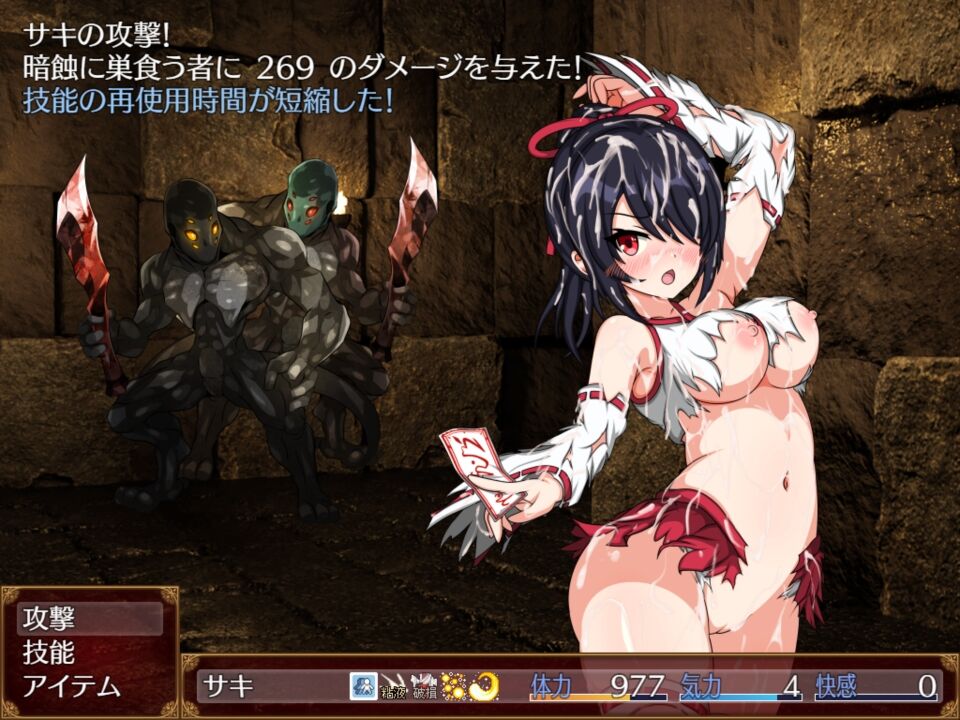 祓妖巫女の少女が地の底に溢れる妖魔を祓う『巫女少女 × 戦闘エロ専門RPG』作品です。