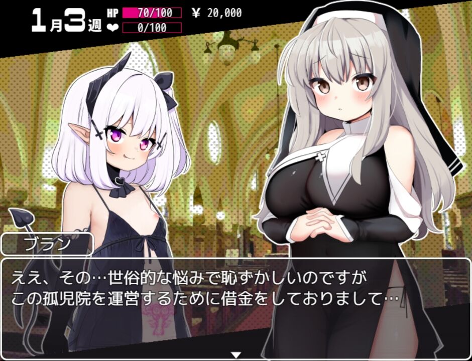 教会を守るため、シスターが不埒な金策に励んでしまう『イベント探索型RPG』作品です。