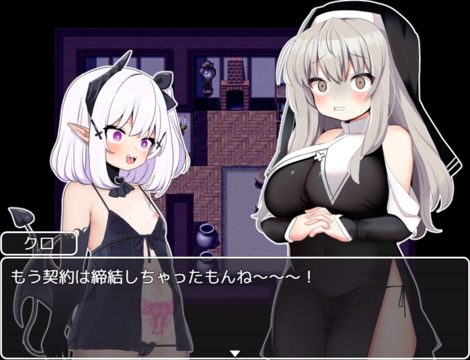 爆乳シスター&貧乳淫魔の対比が良く、二人絡むシーンもあれば、クロちゃん単独シーンもあるぞ!