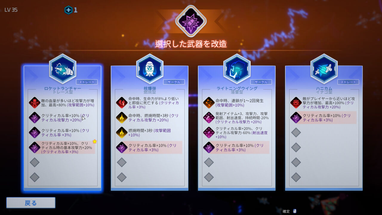 開始時に3回の強化選択できる。 経験値+40%ボーナス |