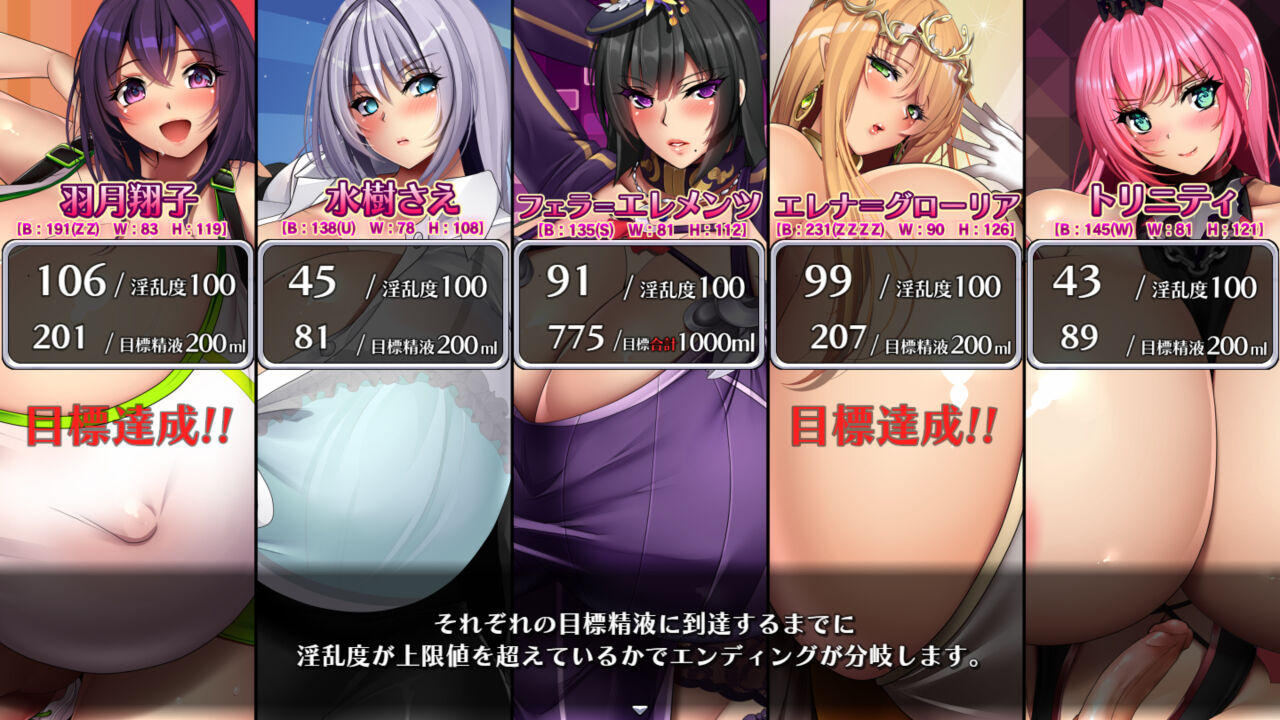 他4名は「それぞれ精液量200ml」達成時にエンディングが発生します。
