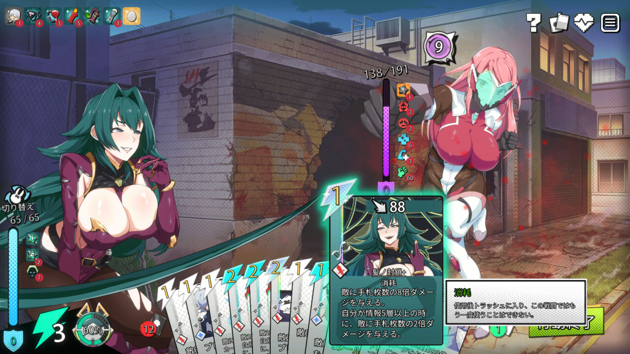 ┗ 髪ノ封鎖 … コスト0:手札8倍ダメージ(ウィロー好感度Lv.5)