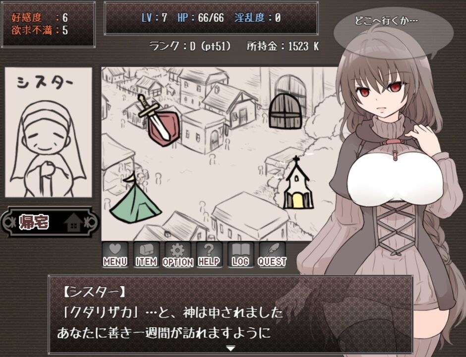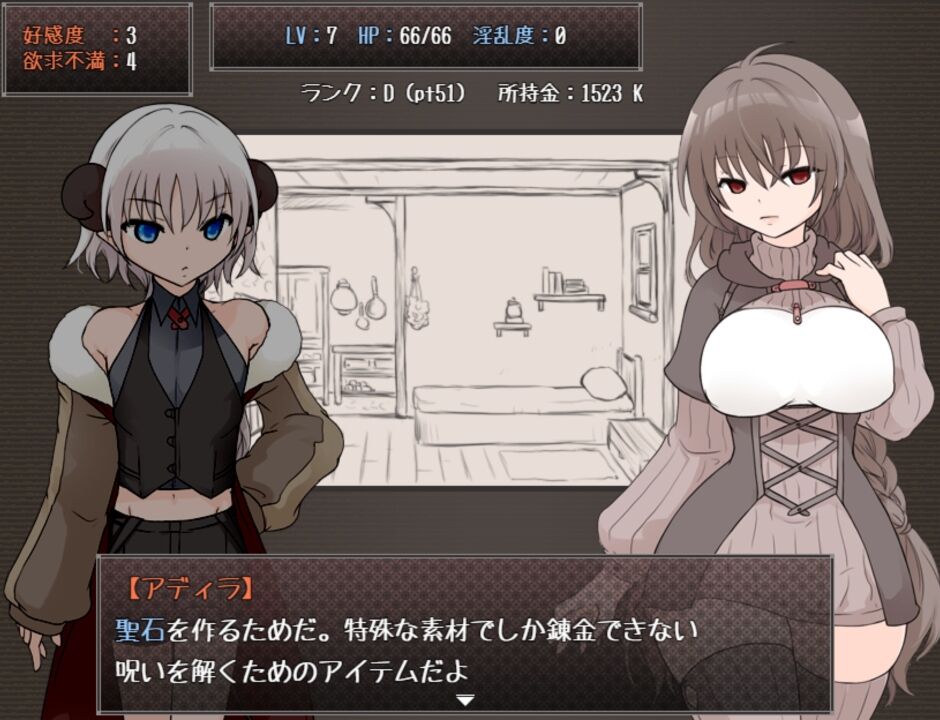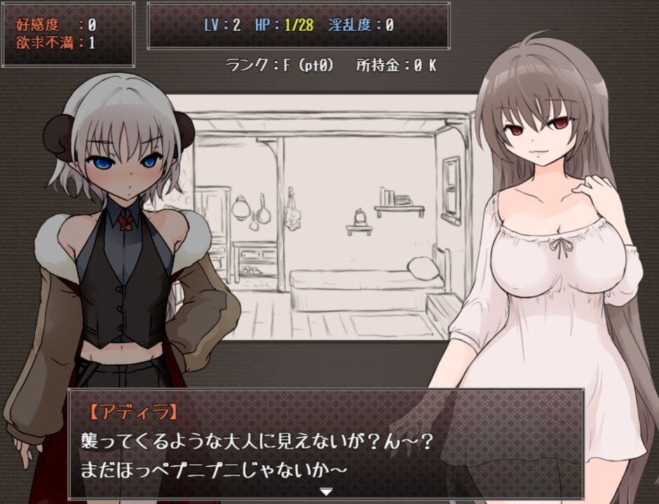 好感度と欲求を満たすことで、就寝時に「えっちする」解禁。 |