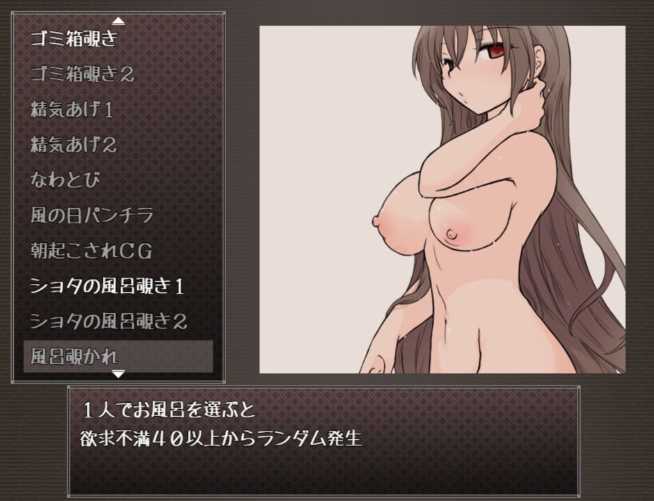 「一緒にお風呂」時、淫乱を満たしていれば発生。 |