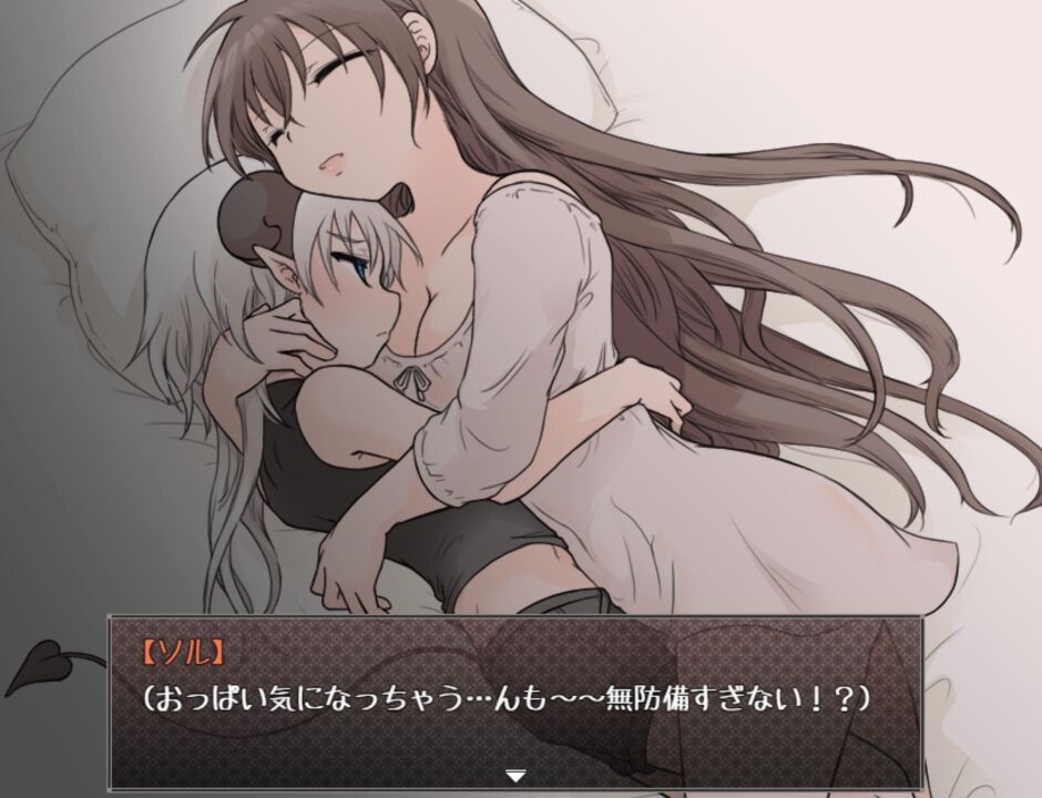 淫魔らしい愛情表現で立場は逆転気味です。好感度による段階的な会話の変化に注目してください。