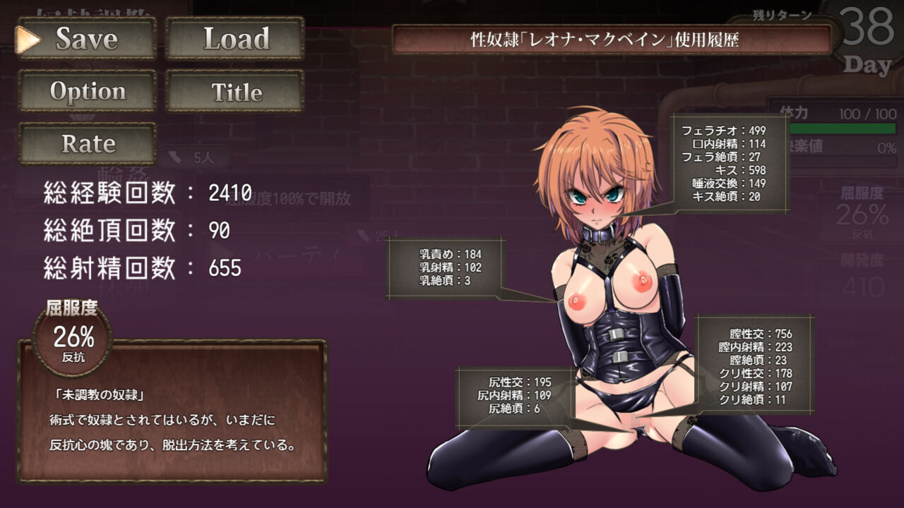 タイトル画面に戻るか、屈服度100%以上で末路を閲覧してください。