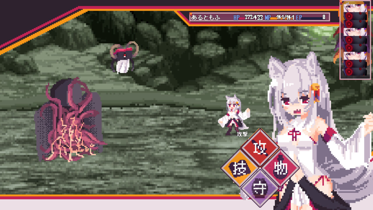 エッチ要素は、戦闘時のドットアニメ、敗北時の大きなドットCGが主になります。