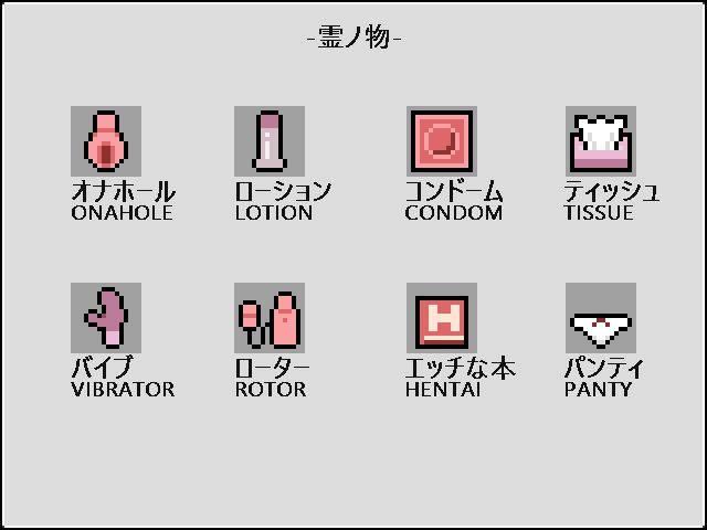 霊ノ物は全部で8種類あります。例えば「ローター(ROTOR)、パンティ(PANTY)」などです。