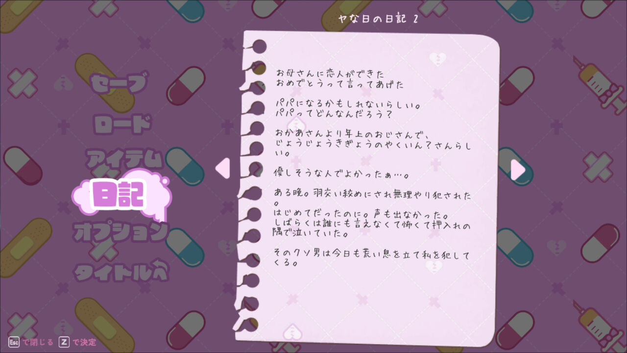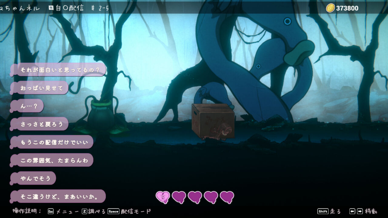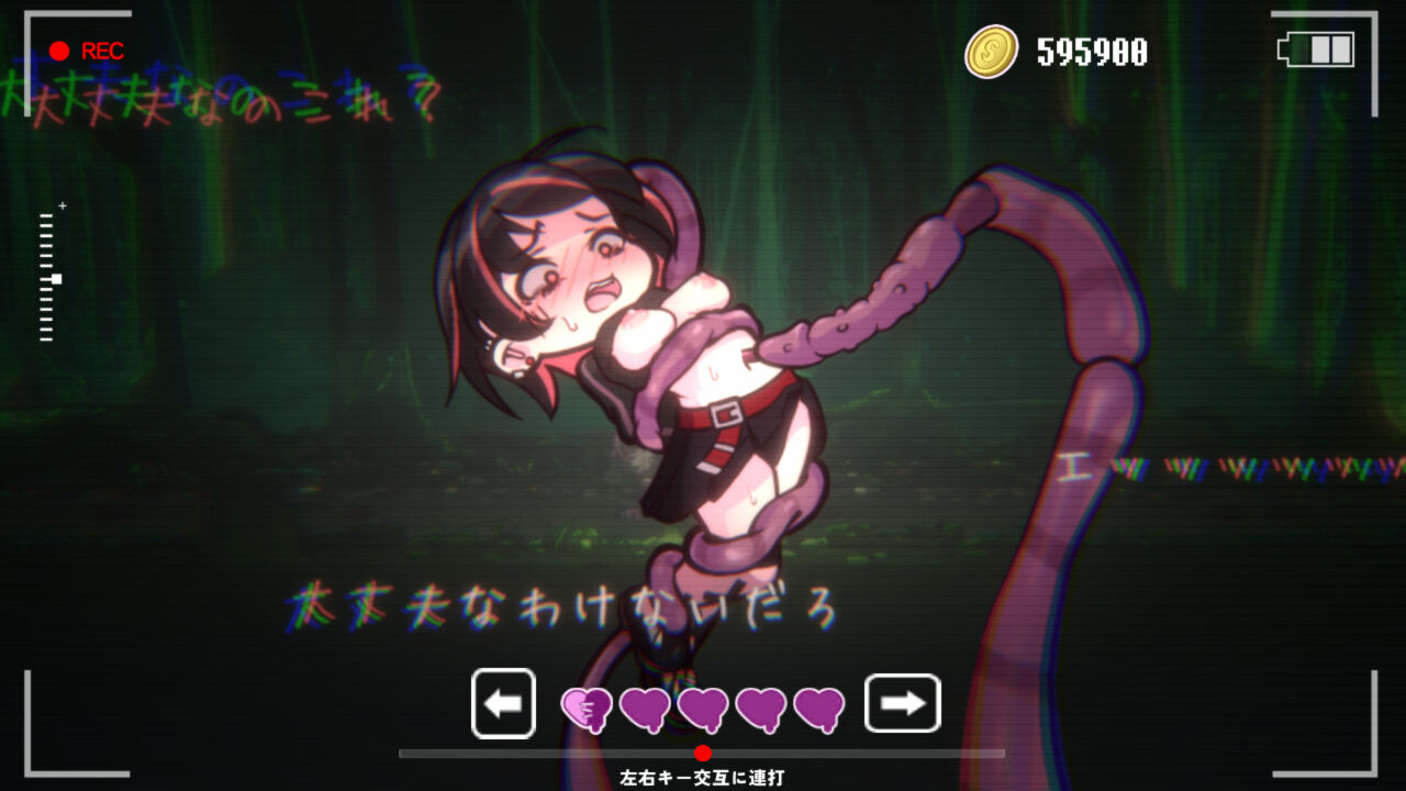 メンヘラな自殺願望配信者が異形の森を彷徨う『リョナ × 横スクロールADV』作品です。