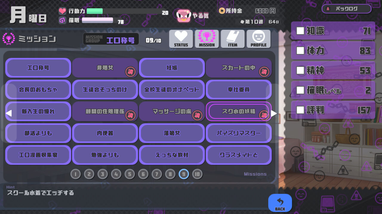 ・保健室 … 特訓で失敗することで解放されます。