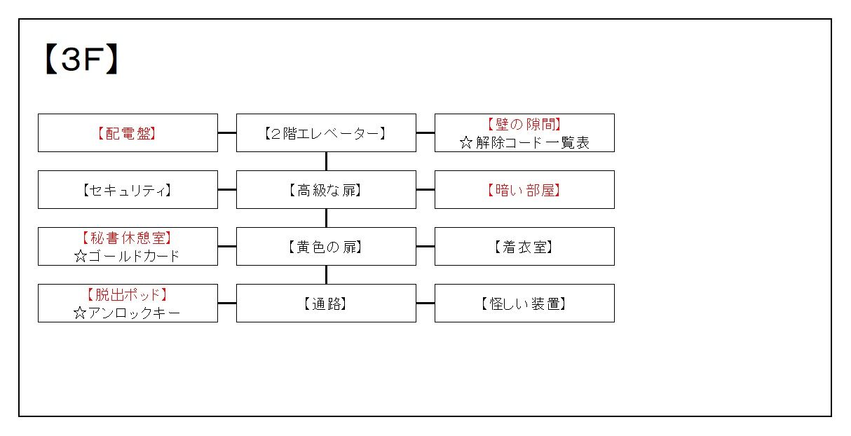 | - | 3階 | 秘書休憩室、セキュリティ、暗い部屋、配電盤 |