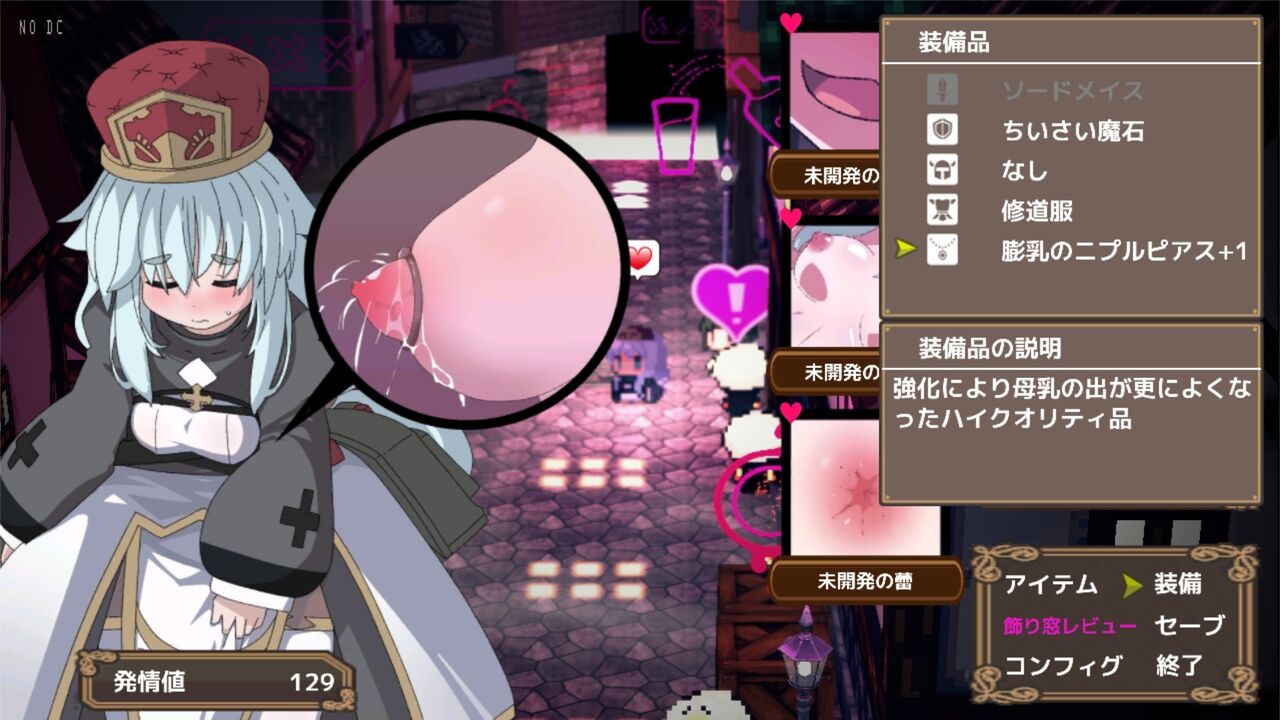 ただし、淫紋の影響から「発情値」が高まり、持続的なダメージを受けるため、街で「売春」して、
