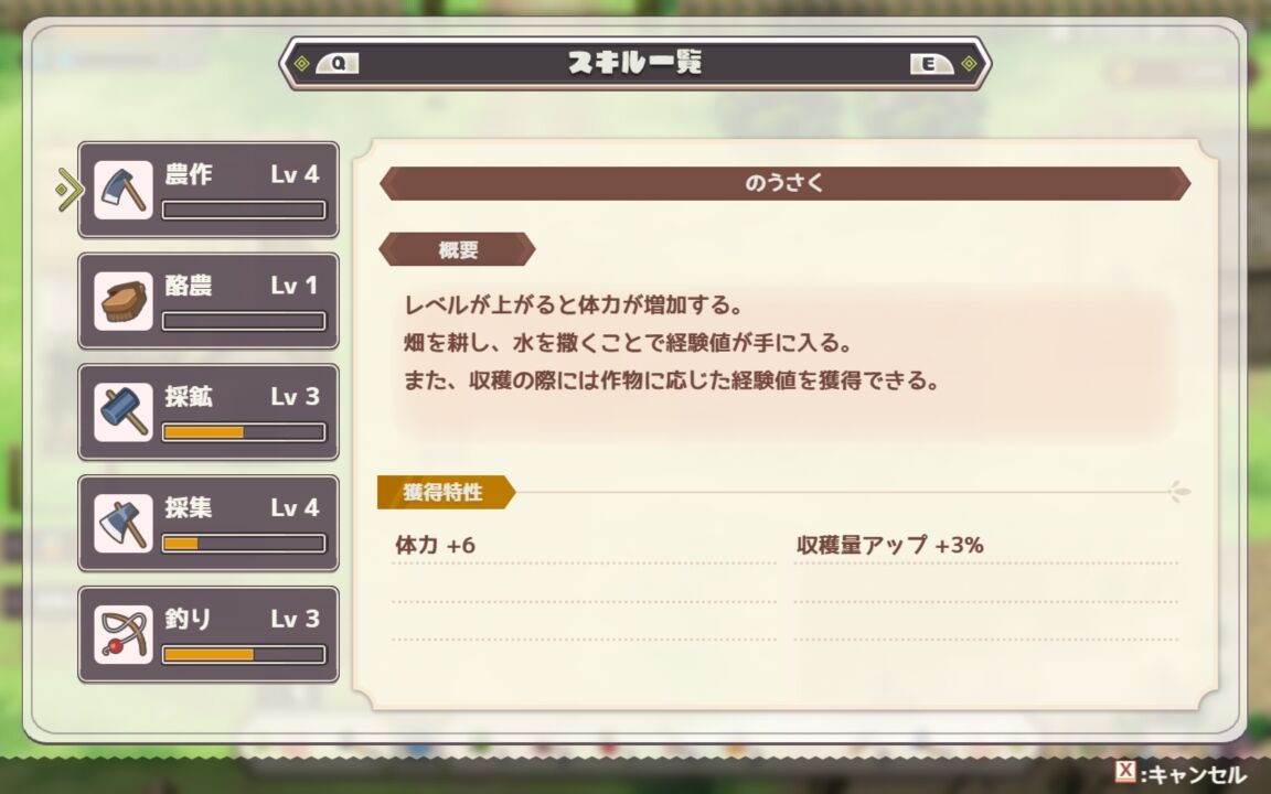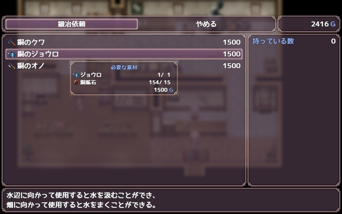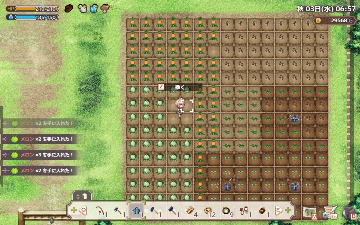 ・品質の上がった農具はチャージできる。(広範囲に水まきなど)