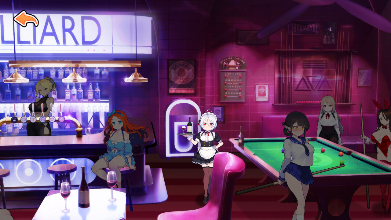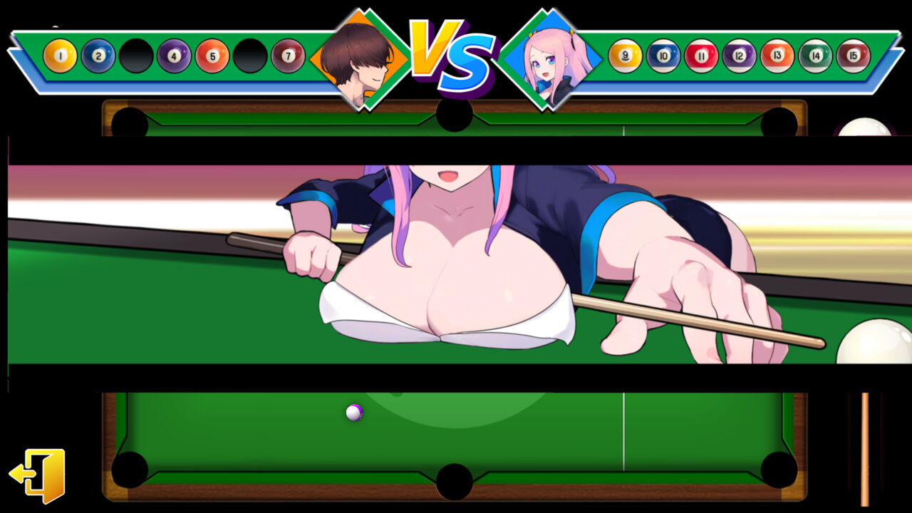 7名のヒロインと「エイトボール」で勝負します。勝ったらムフフなご褒美が待っていますぞ!