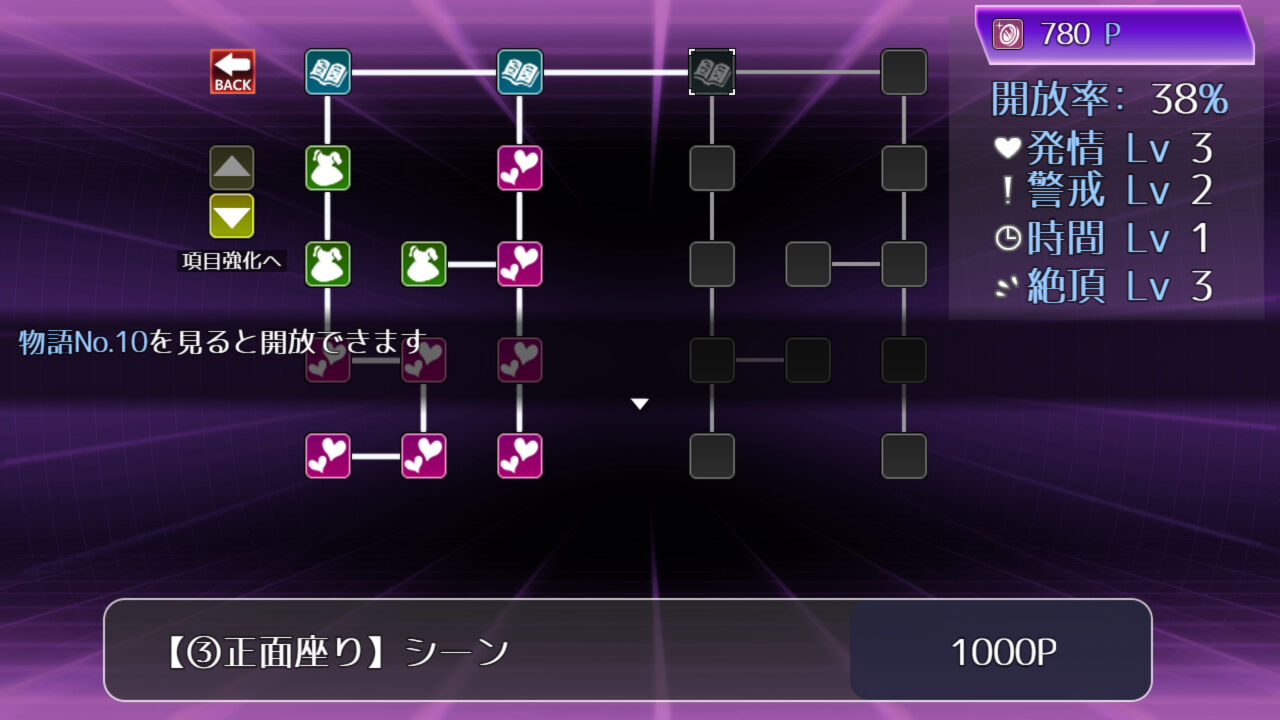 痴漢で得た「ポイント」は、各種行動やメインストーリー(ADVパート)の解放に使用できます。