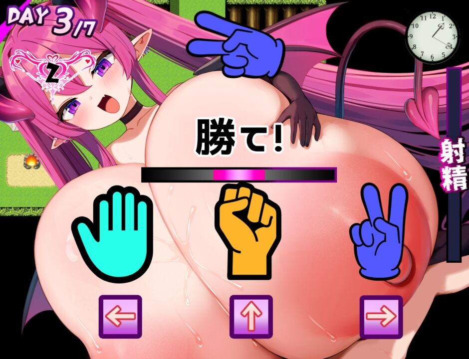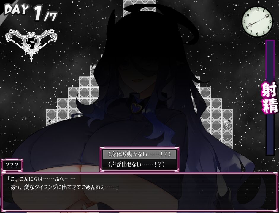 また、行動ごとにゲーム内の「時間」が進行します。初見では射精に耐えるだけでも難しいですが、