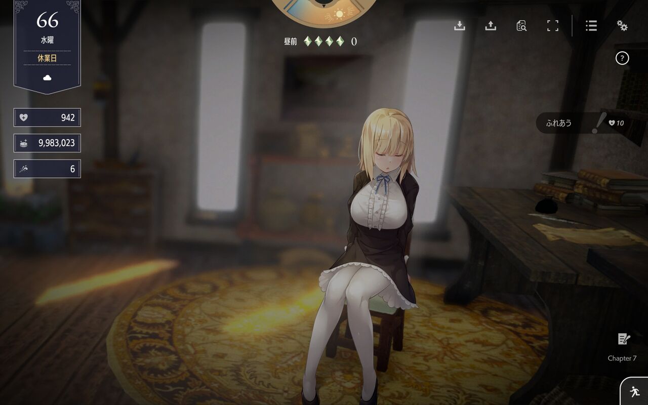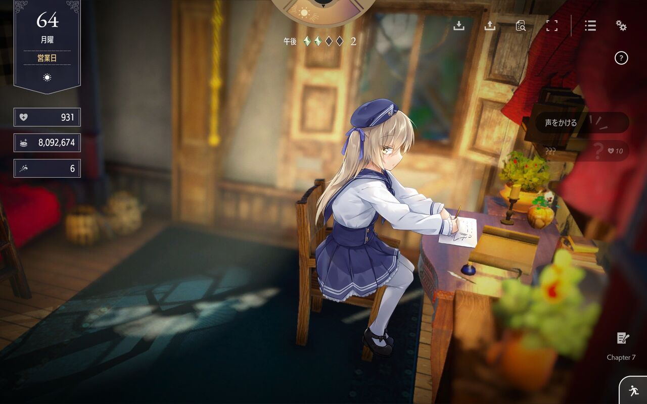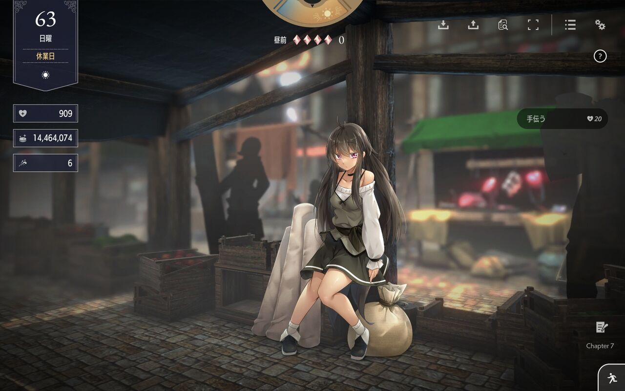 本編はチャプター形式で進展します。主な目標は「酒場ランク・親密度ランク」を上げることです。