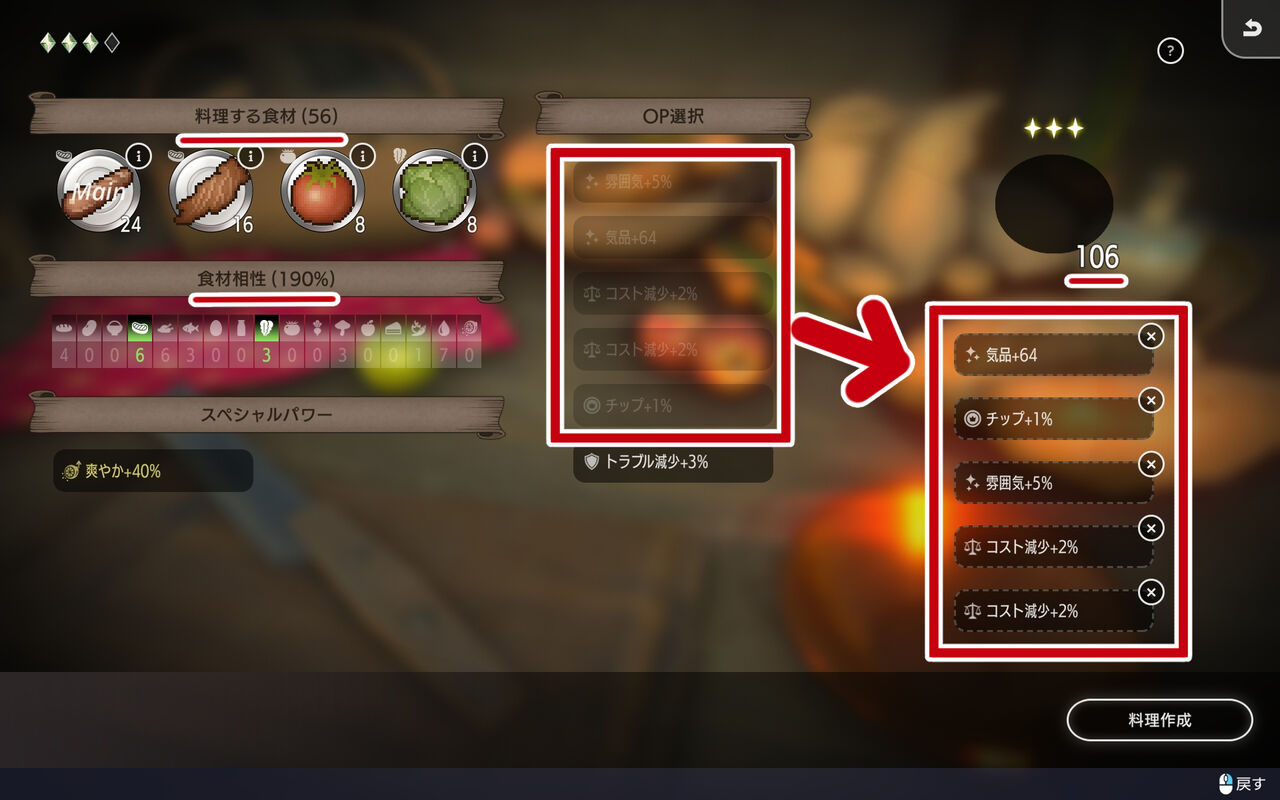 中盤以降は「品質」が付与された食材を適当に組み合わせるだけでも強いです。