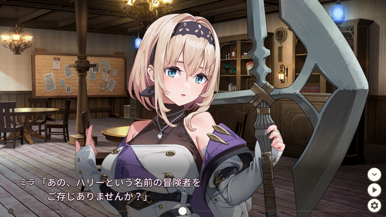 巨大なハルバードを振るう冒険者《ミラ》は、かつて将来を誓い合った男の行方を追っています。