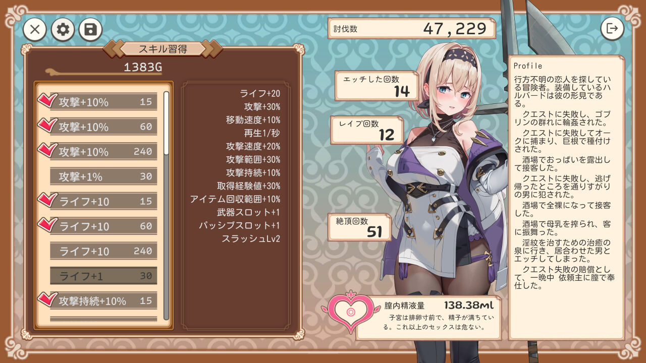 酒場でエロバイトしながらクエストに挑む『ハルバード少女 × サバイバーライク』作品です。