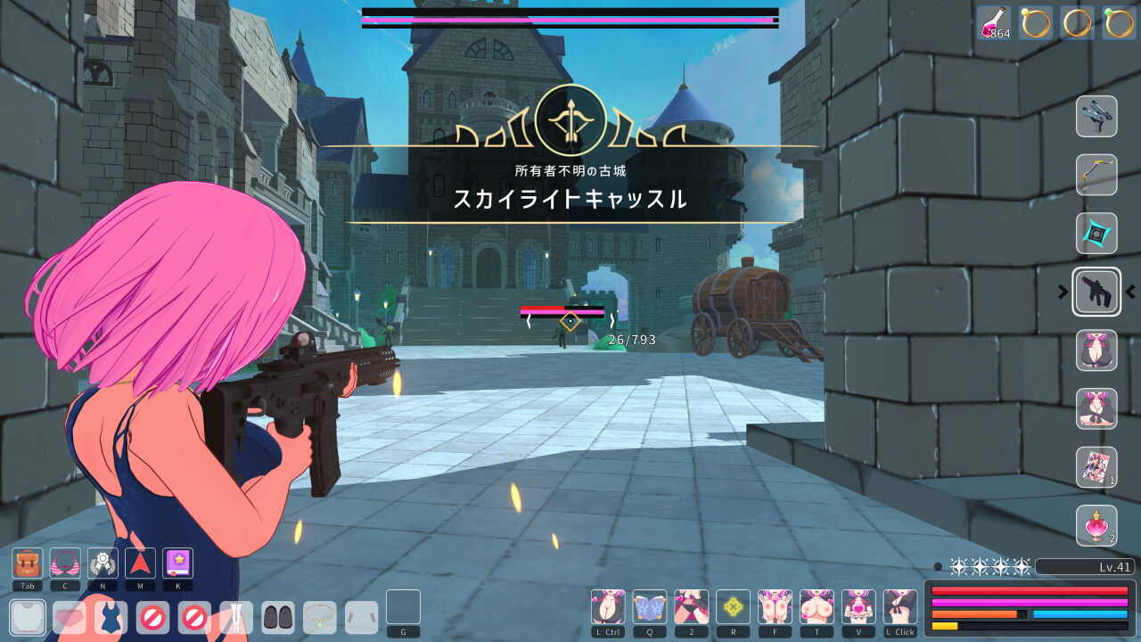 『アイテム図鑑』『実績』のコンプリートが目標になるかな。武器は「魔法、銃器、魅了」があり、