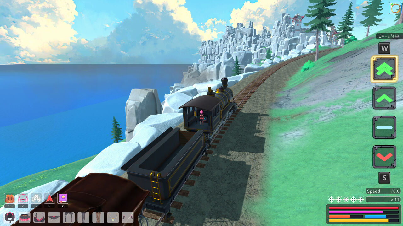 マップ東端の「海の町:サンミコアイランド」にて「列車」を解放できます。