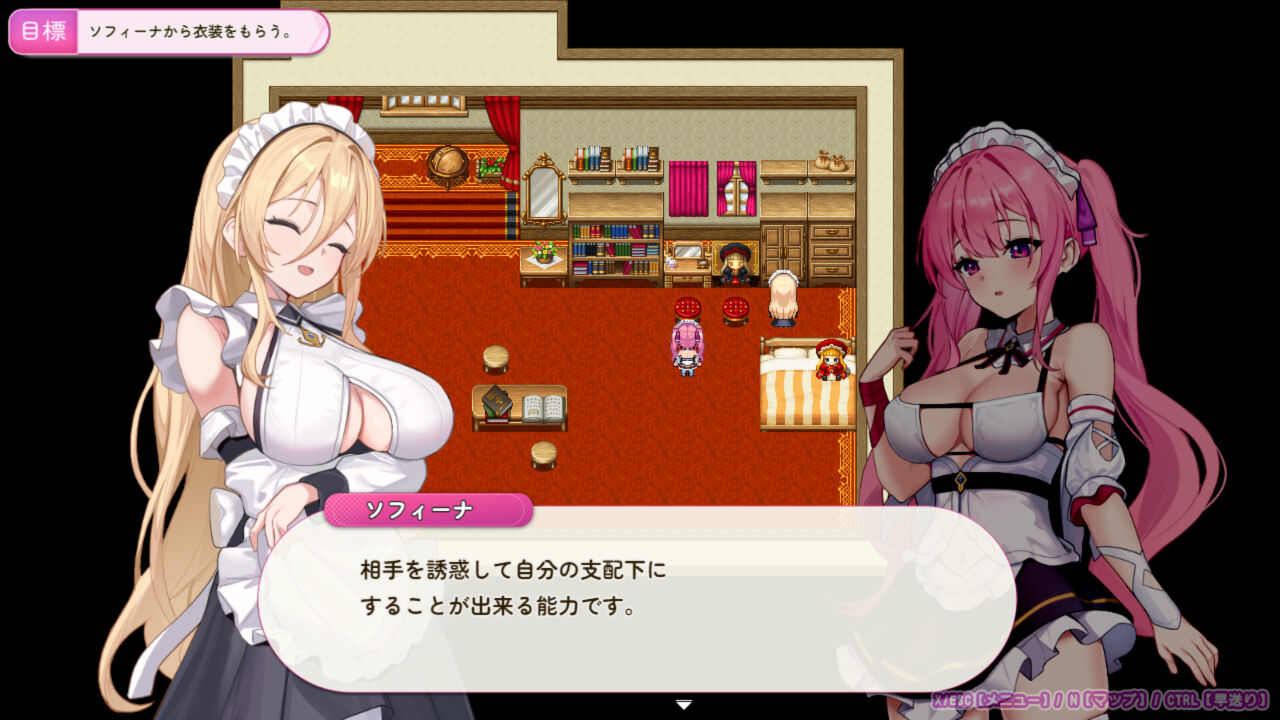 新米ご奉仕メイドがサキュバスの力に目覚める『ご奉仕 × セクハラ × 探索型RPG』作品です。