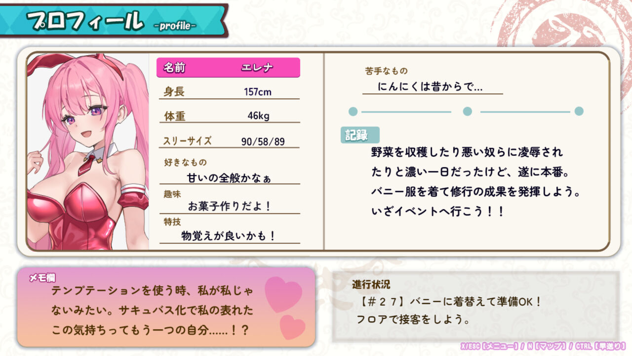 アイコンの出ている場所で接客すればOKです。 途中でHシーンが発生します。 ⇒H:バニーオナニー |
