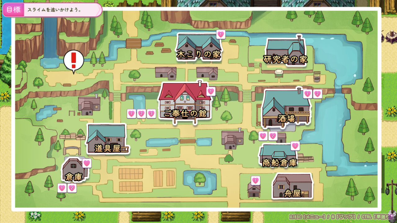 イベントを回収していく探索型です。戦闘なし、謎解きなし、簡単なミニゲームあり!