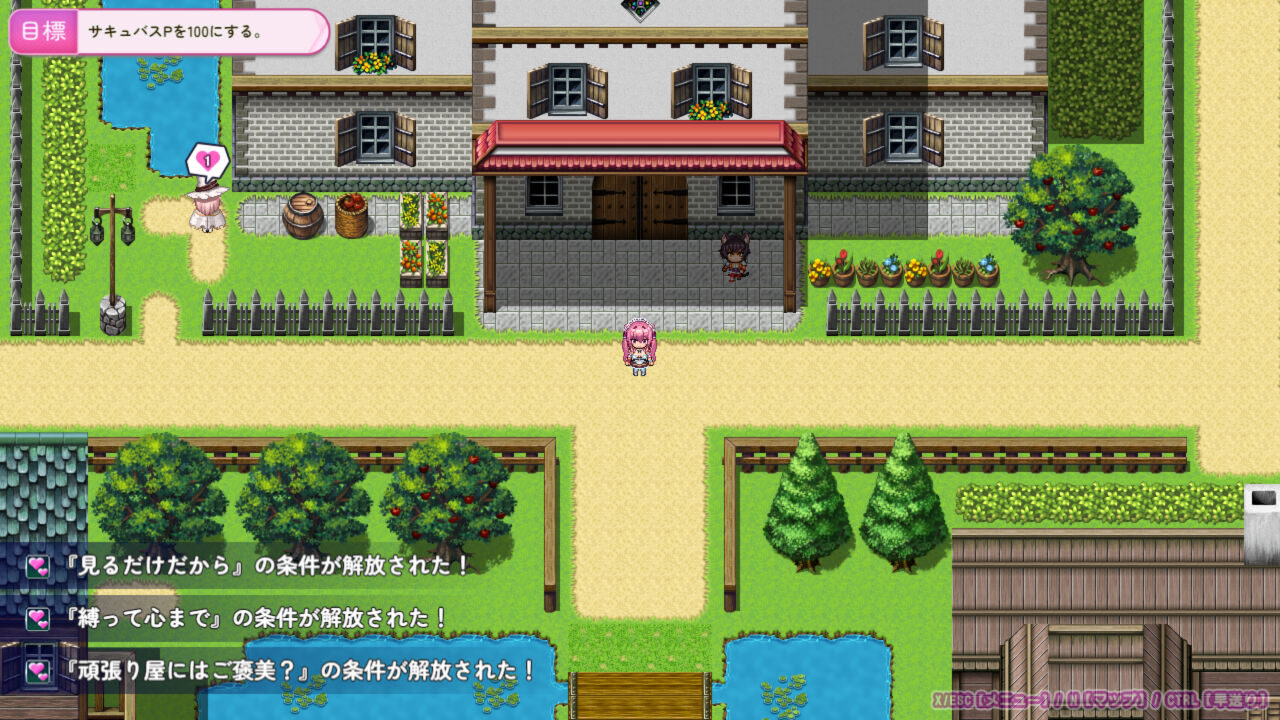 目標に沿って村のあちこちを巡りながら、エッチな経験を積んで「サキュバスP」貯めていきます。