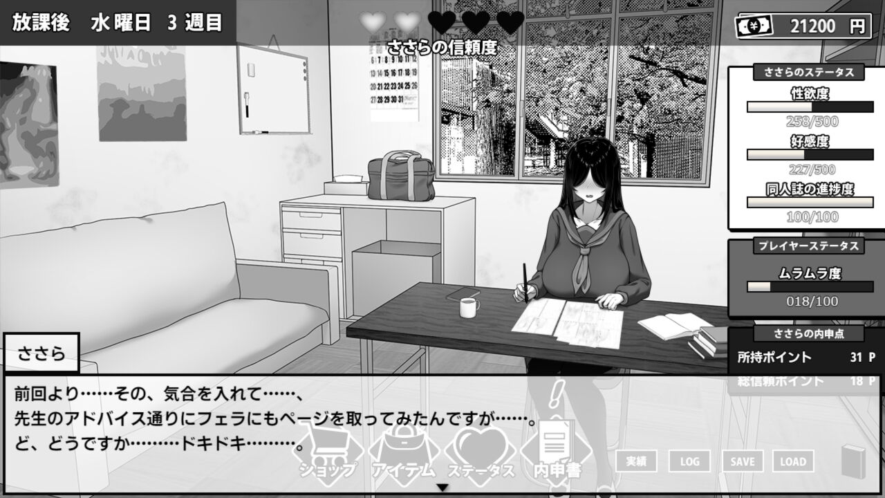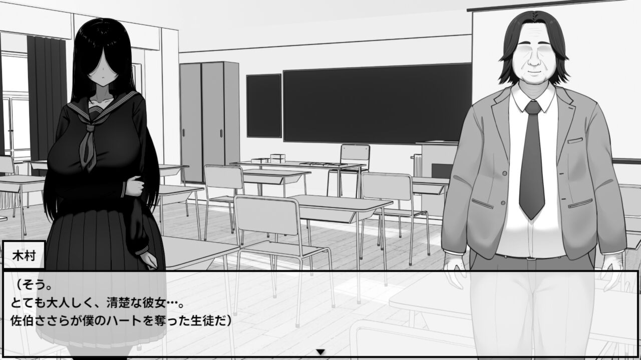 はじめてのエロ同人活動を応援する『黒髪爆乳JK × 中年教師SLG』作品です。