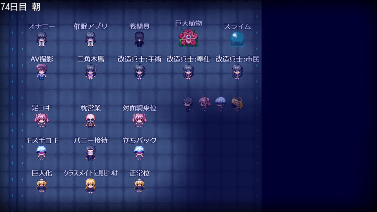 ・各施設では戦闘および各ヒロインのHシーンがあります。