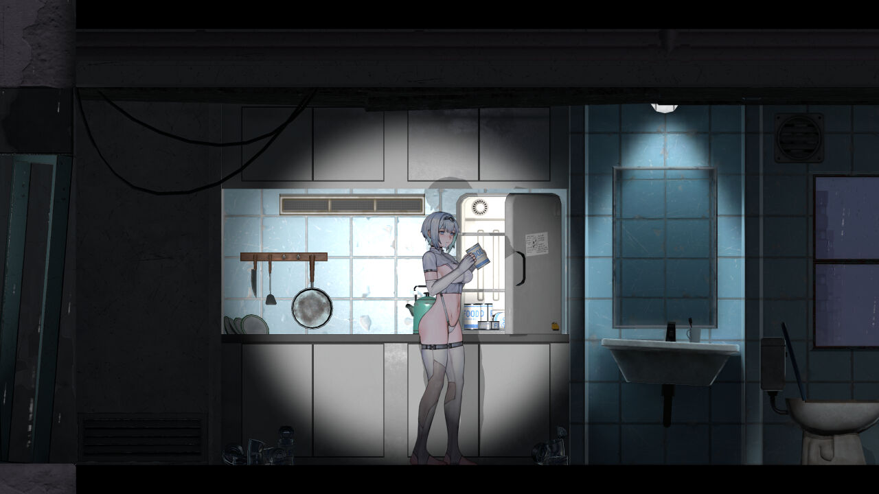 懐中電灯(Tキー)の説明以降、前方から敵が出てきます。