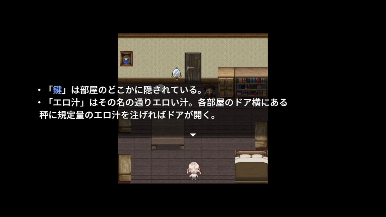 正攻法で「鍵」を見つけるか、スケベして「エロ汁」を一定量集めると、次の部屋が開放されます。