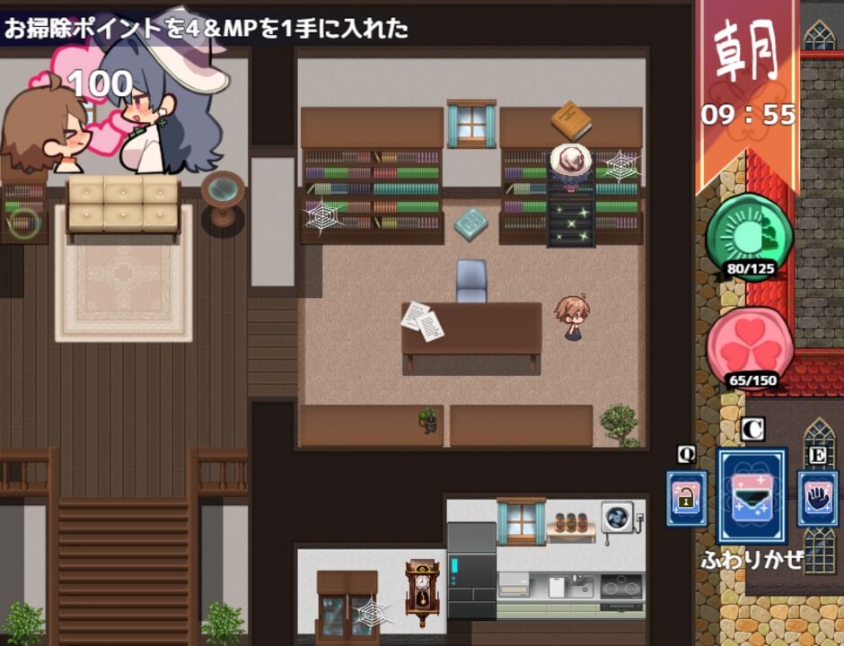 住み込みの修行生活が始まります。毎日「お掃除、お手伝い、スキンシップ」等の行動を選択し、