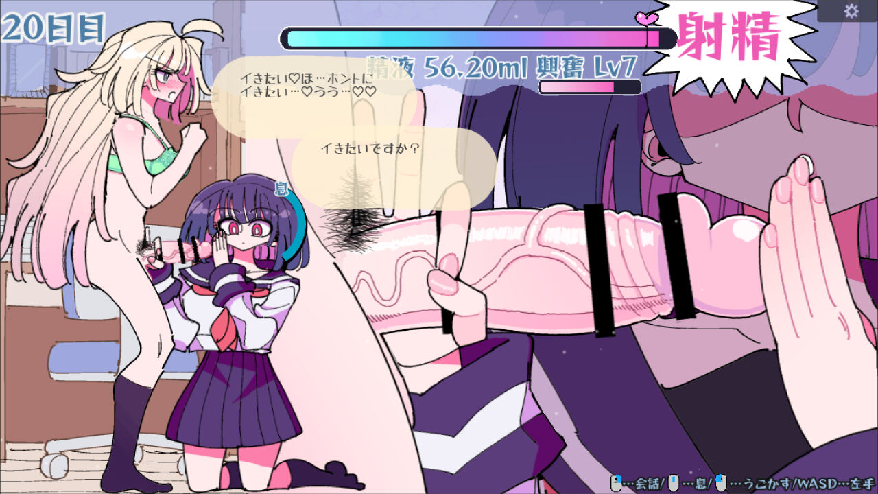 遠くまで射精して「おちんちん経験値」を稼ぎ、6つの強化項目を上げて敵の本拠地を撃ち抜け!