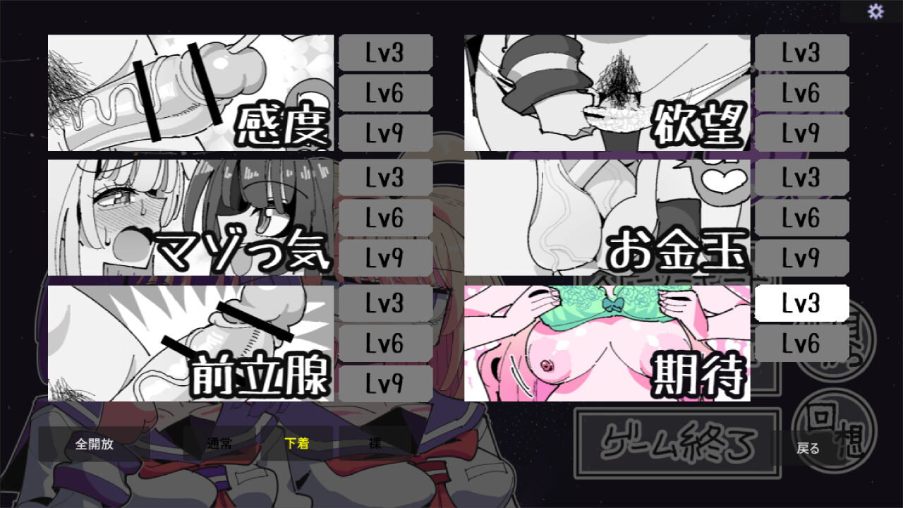 | 欲望 | Lv.3 | パンチラ+たくしあげ |