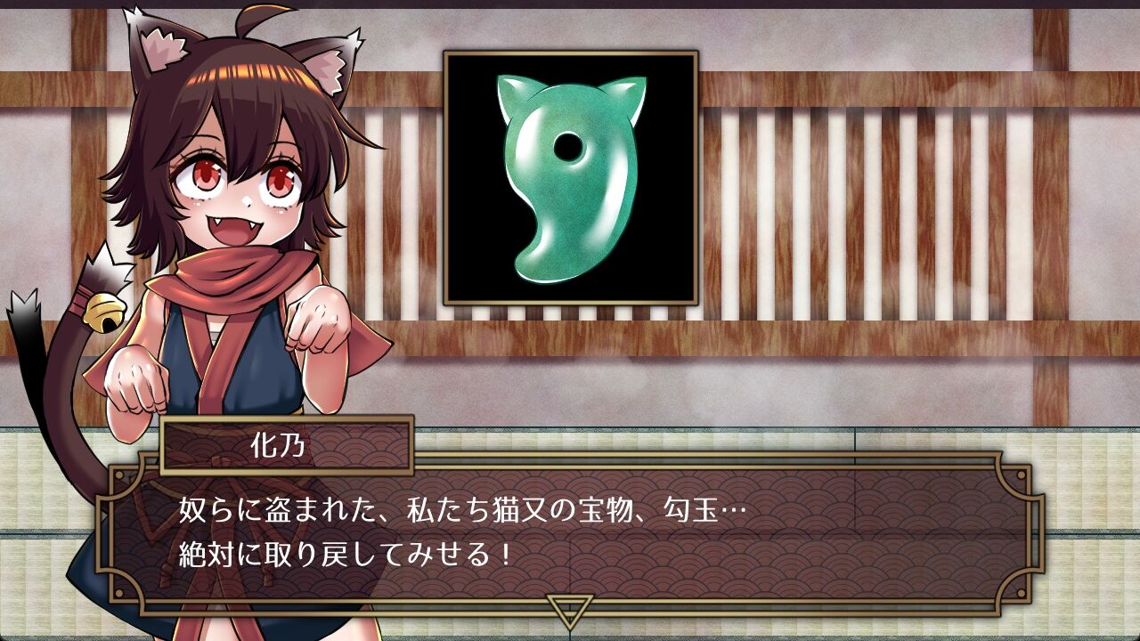 宝物を盗まれてしまった猫又の少女《化乃》が、何かを企む「悪の忍者軍団」と対峙します。