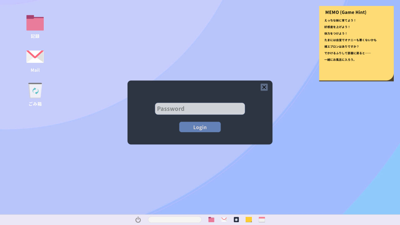 ・深夜時間前に妹をクリックして「話しかける」コマンドを表示したまま「寝る」以外のコマンドを実行すると、夜中になったときに残っていたコマンド名が「えっち」に切り替わる。1日目で突入可能。(体力は25以上残すように。)