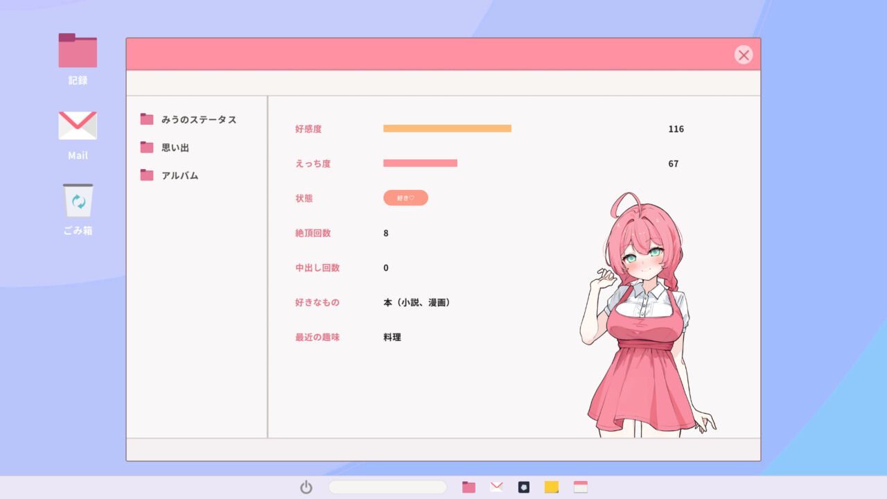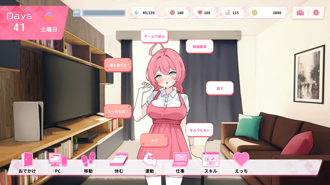 ゲーム、映画、お話、好きな項目で好感度を上げましょう。