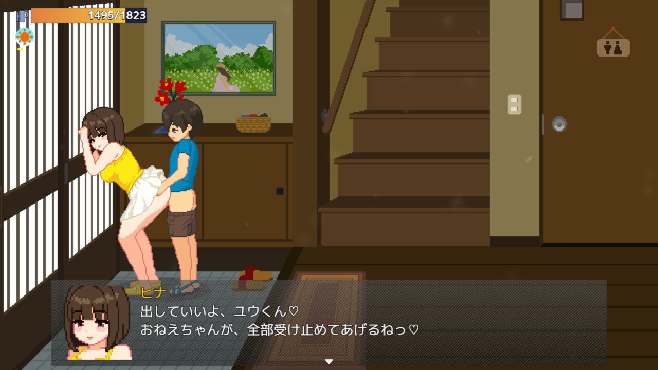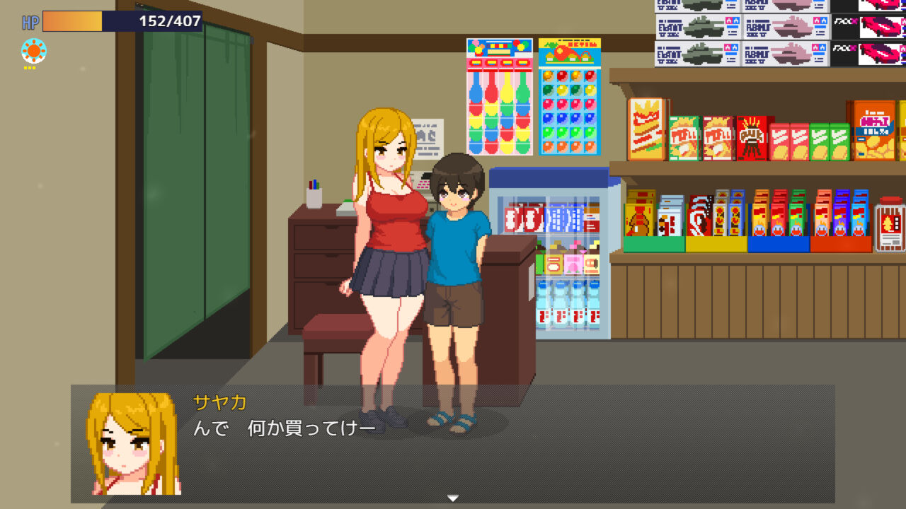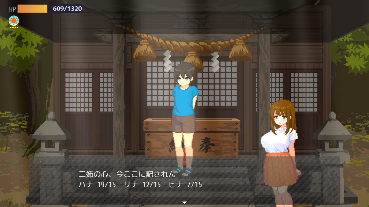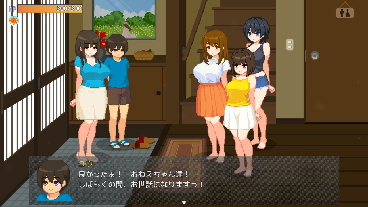 三姉妹のお姉ちゃんたちと熱い夏を過ごす『ドットアニメ × おねショタ探索SLG』作品です。