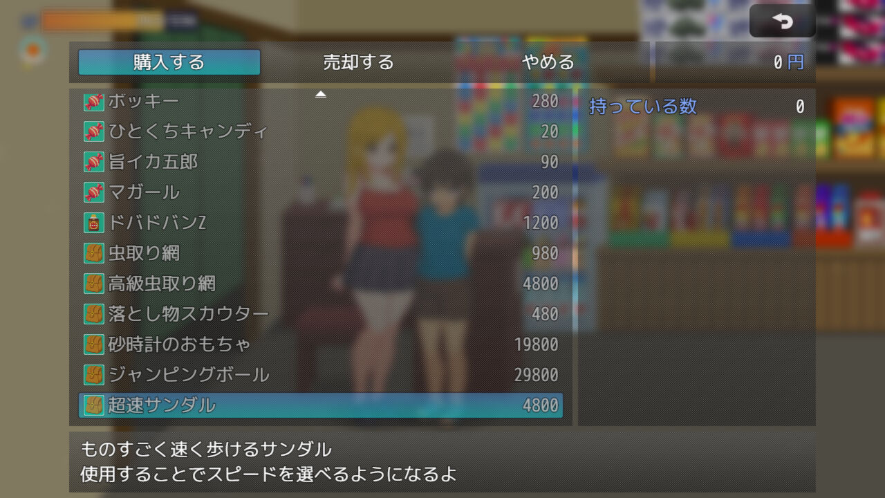 ・駄菓子屋で「便利アイテム」を購入できます。(ワープ・時間操作など)