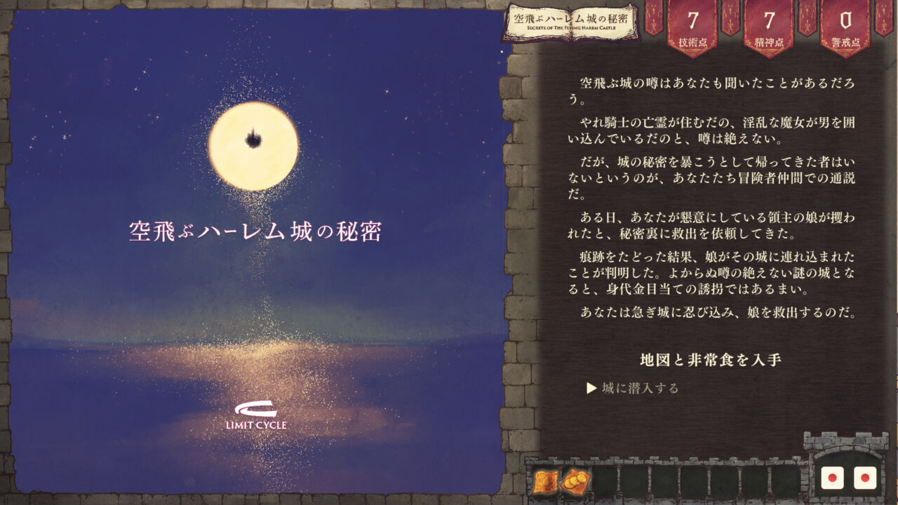 その空中城では淫靡な宴が繰り広げられる『マルチエンド × ゲームブック風RPG』作品です。