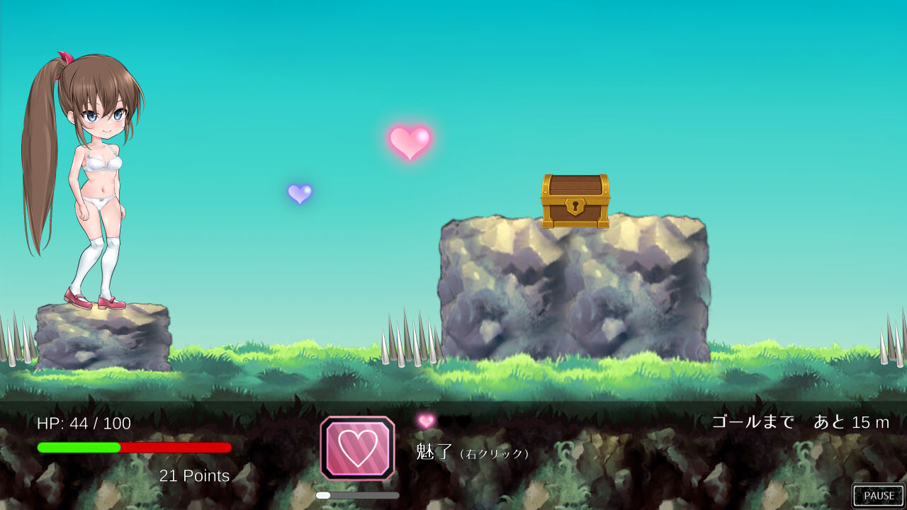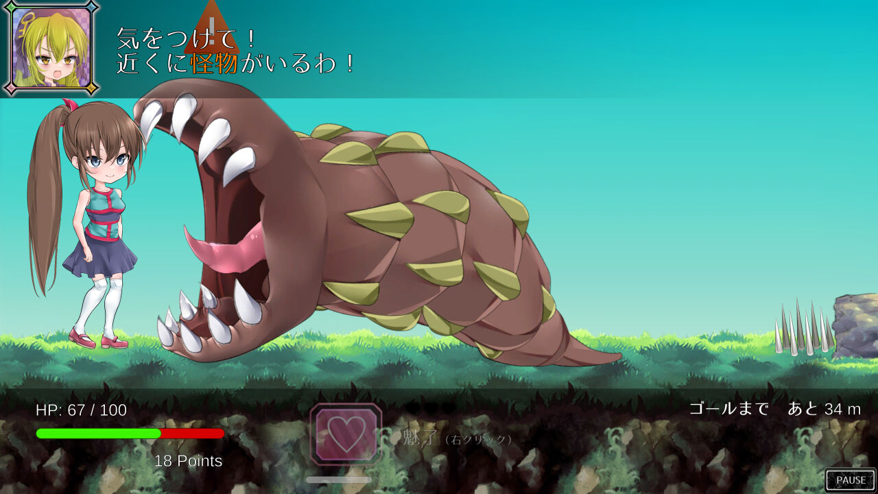 マウスボタン長押しでジャンプ!トゲや化物を回避しながらゴールを目指す簡単アクション!