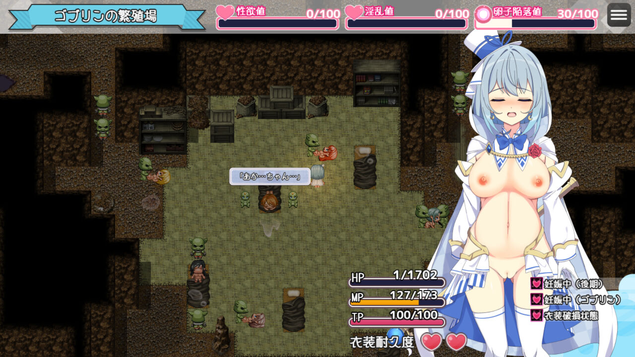 | ゴブリンの子を出産 | 2章 | 敗北後、繁殖場でのイベントを進める。 |