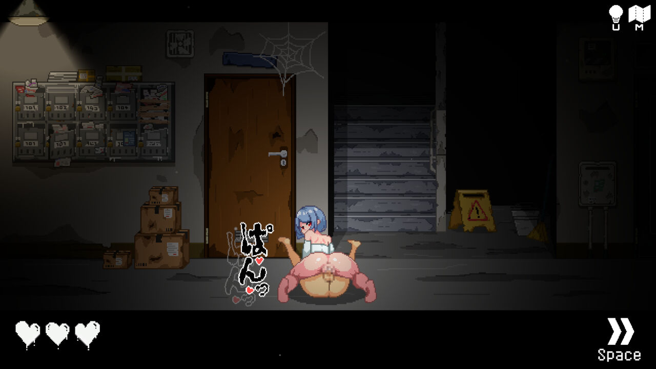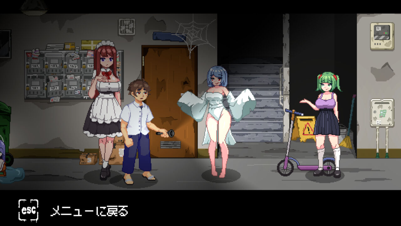 痴女たちに閉じ込められた廃マンションから脱出する『スニーキング探索ADV』作品です。