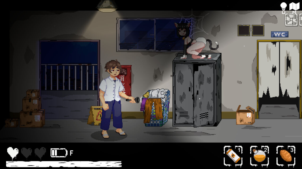 部屋はロッカー、廊下はゴミ箱に隠れられます。(記載箇所以外は飾り)