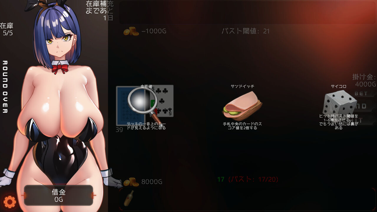 ブラックジャック自体は運が絡みますが、イカサマアイテムで解決できます。