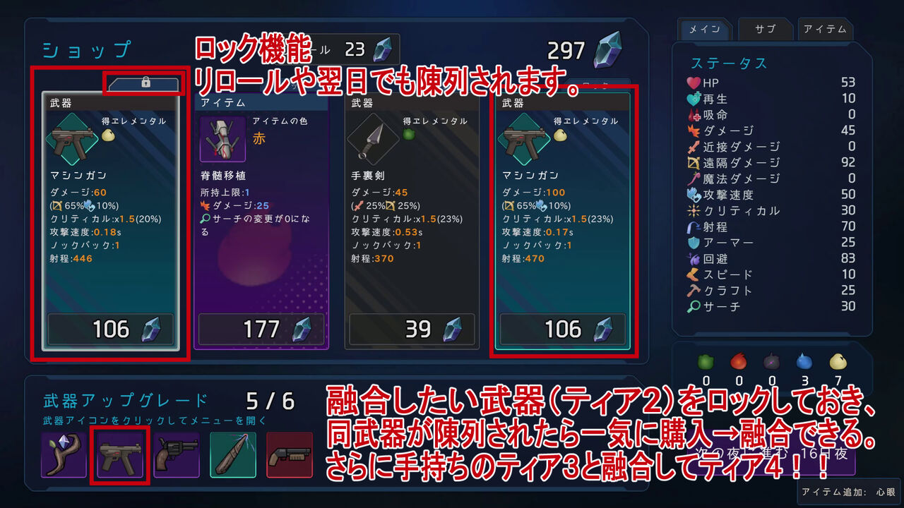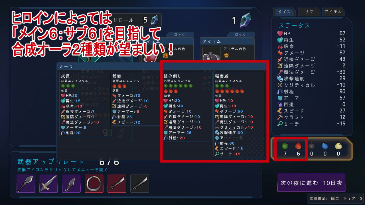 なお、レベルアップはありません。武器融合、エレメンタル厳選、アイテム購入のみでテンポ良し!